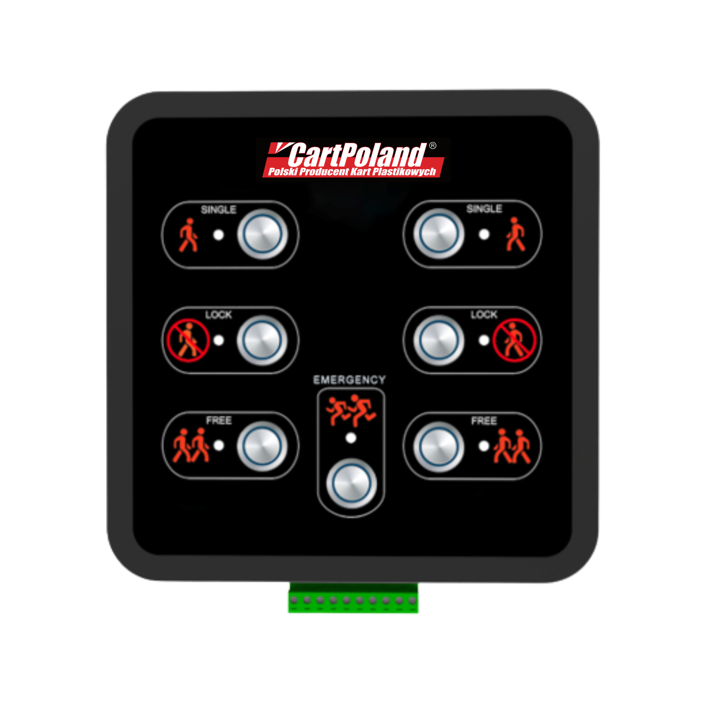Panel sterujący umożliwia zarządzanie przejściami w obu kierunkach, oferując kilka trybów pracy: pojedyncze przejście, blokada przejścia, tryb wolnego dostępu oraz tryb awaryjny. Funkcja awaryjnego otwarcia pozwala na natychmiastowe odblokowanie bramki w sytuacjach zagrożenia, co zapewnia bezpieczną i szybką ewakuację.