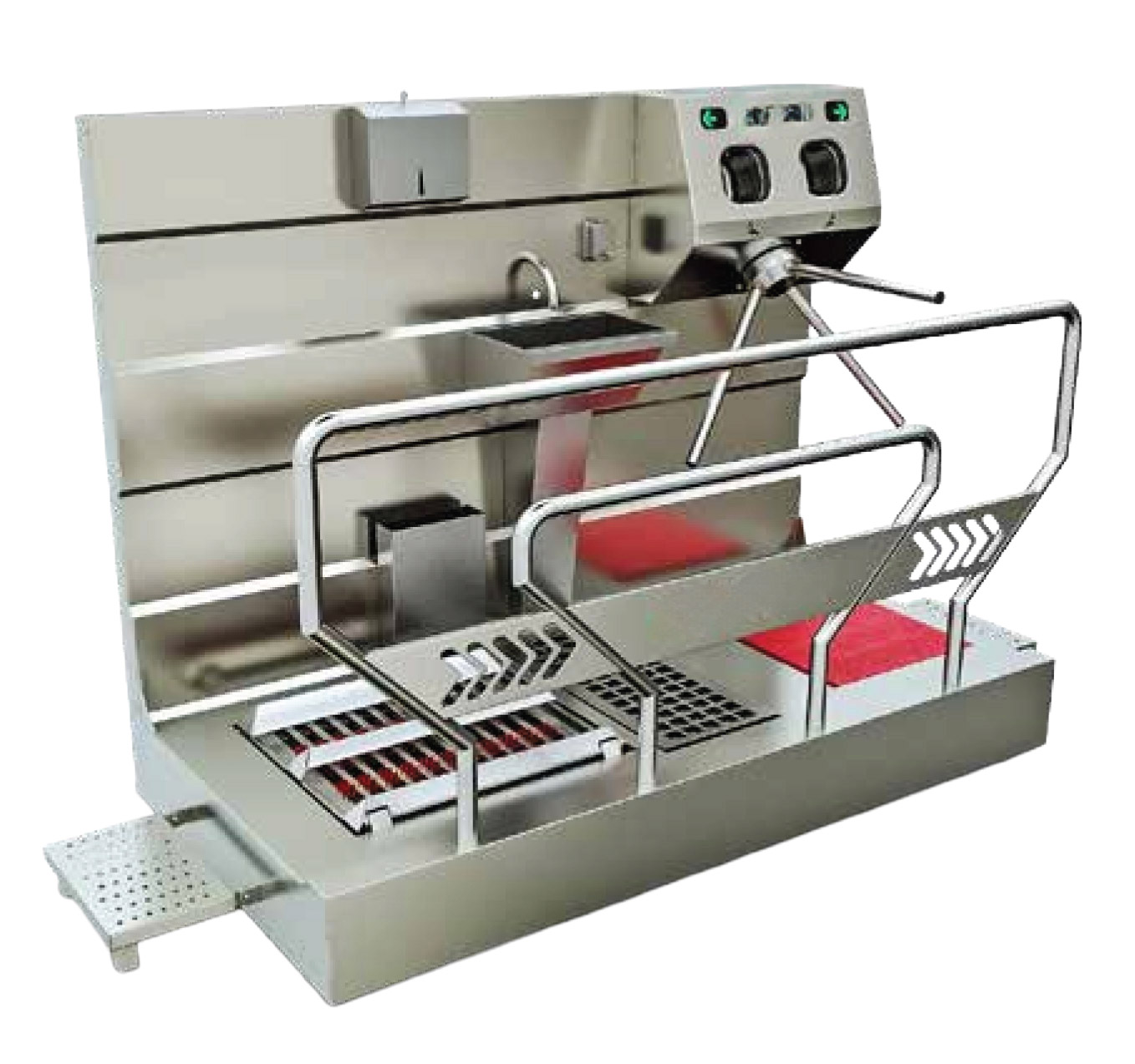 System szczotek jest łatwy w montażu i demontażu, co ułatwia konserwację. Urządzenie posiada prosty w obsłudze system sterowania PLC, a przejście może być uzależnione od wykonania wszystkich etapów higieny dzięki funkcji sekwencyjnej (czyszczenie szczotkami, mycie rąk w umywalce z czujnikiem, dezynfekcja dłoni). Istnieje możliwość ustawienia trybu czasowego dla każdego etapu.