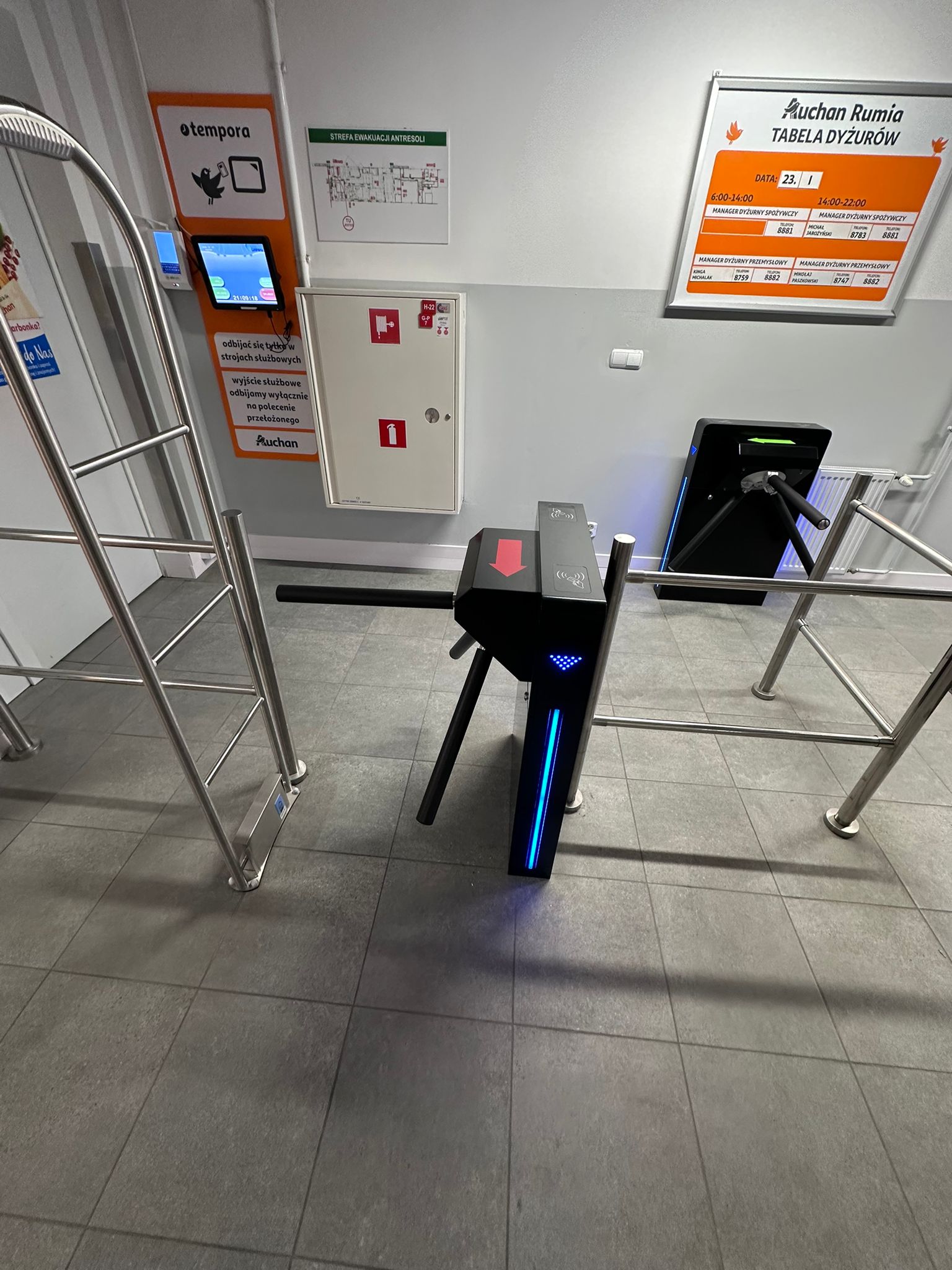 | Opóźniony dostęp | Ramię zablokuje się automatycznie w ciągu 5 s (regulowane), jeśli osoba opóźni wejście |