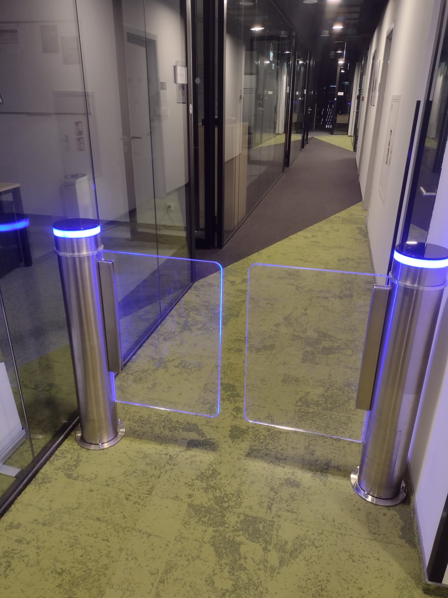 Bramka uchylna CP-310B jest wyposażona w serwonapęd, bramka automatycznie otwiera się po naciśnięciu przycisku lub przyłożenie karty dostępu