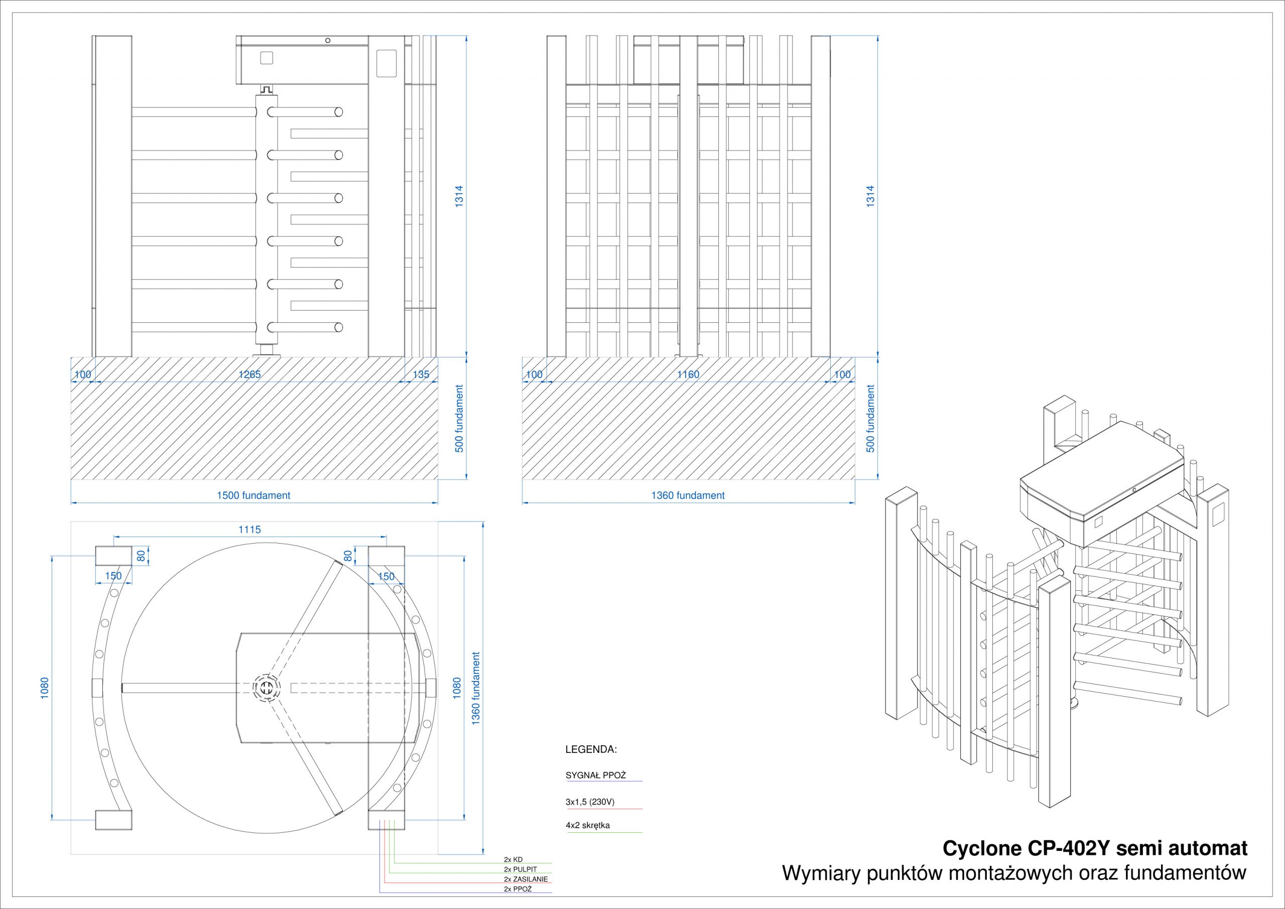 Bramka obrotowa CP-402 mini Y & X jest mniejszą wersją bramy obrotowej pełnej wysokości